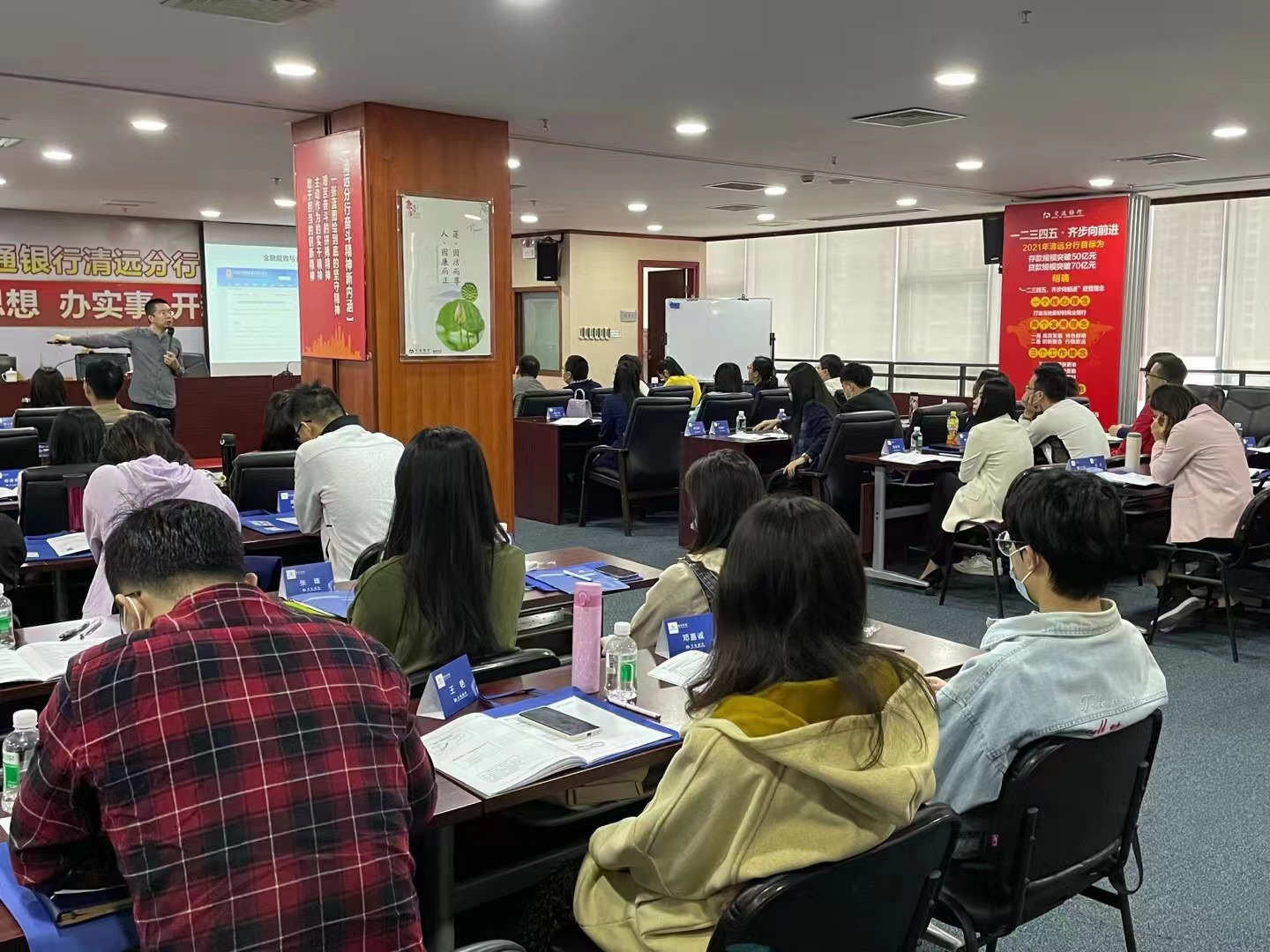 2021年10月17日,強信學院與交通銀行清遠分行合作,由強信學院王敏求老師給交通銀行清遠分行的全體人員講授1天的《內控合規與案件防範》培訓課程。
